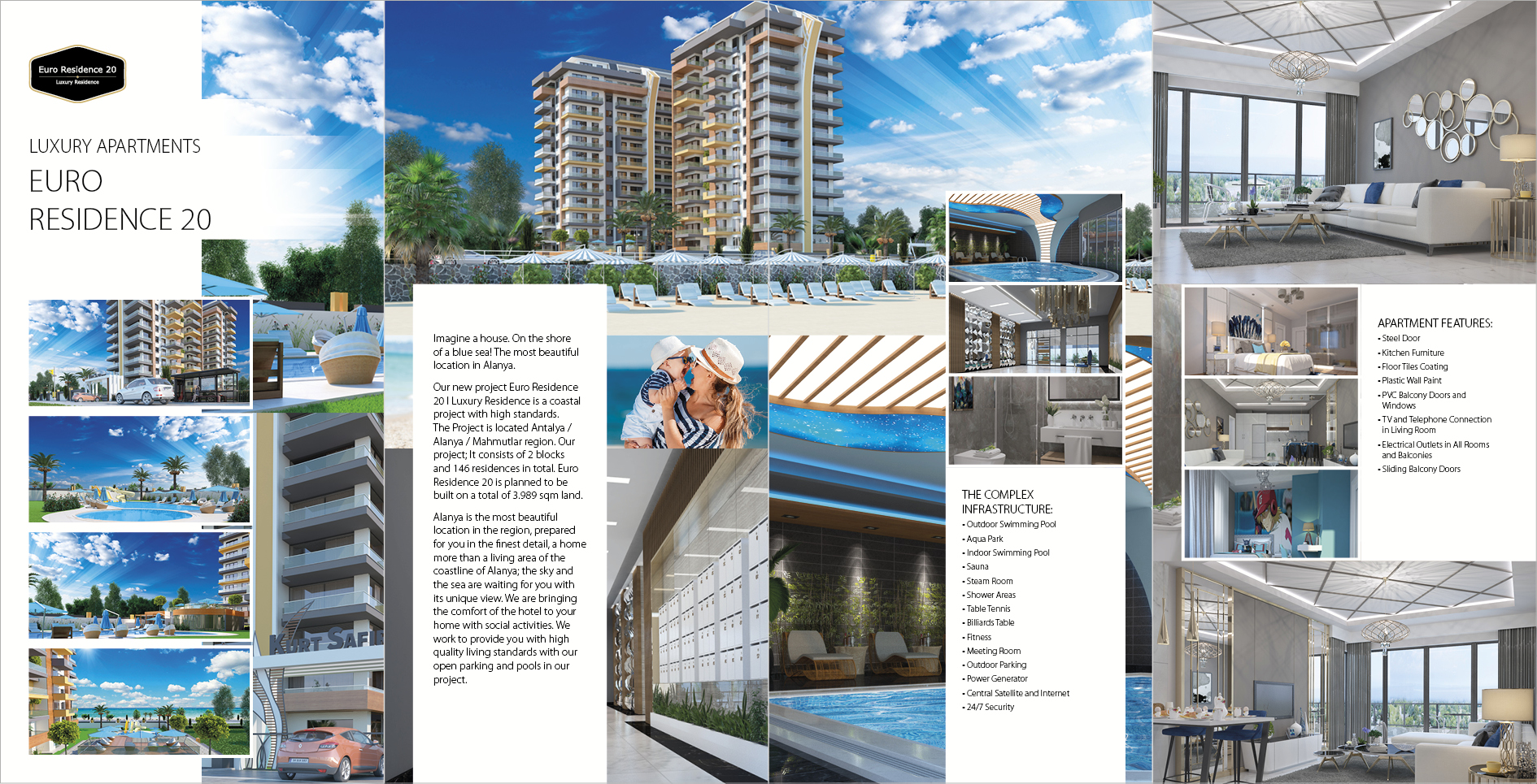 Our new project Kurt Safir I Euro Residence 20 Luxury Residence is a coastal project with high standards. The Project is located Antalya / Alanya / Mahmutlar region. Our project; It consists of 2 blocks and 146 residences in total. Euro Residence 20 is planned to be built on a total of 3.989 sqm land.
