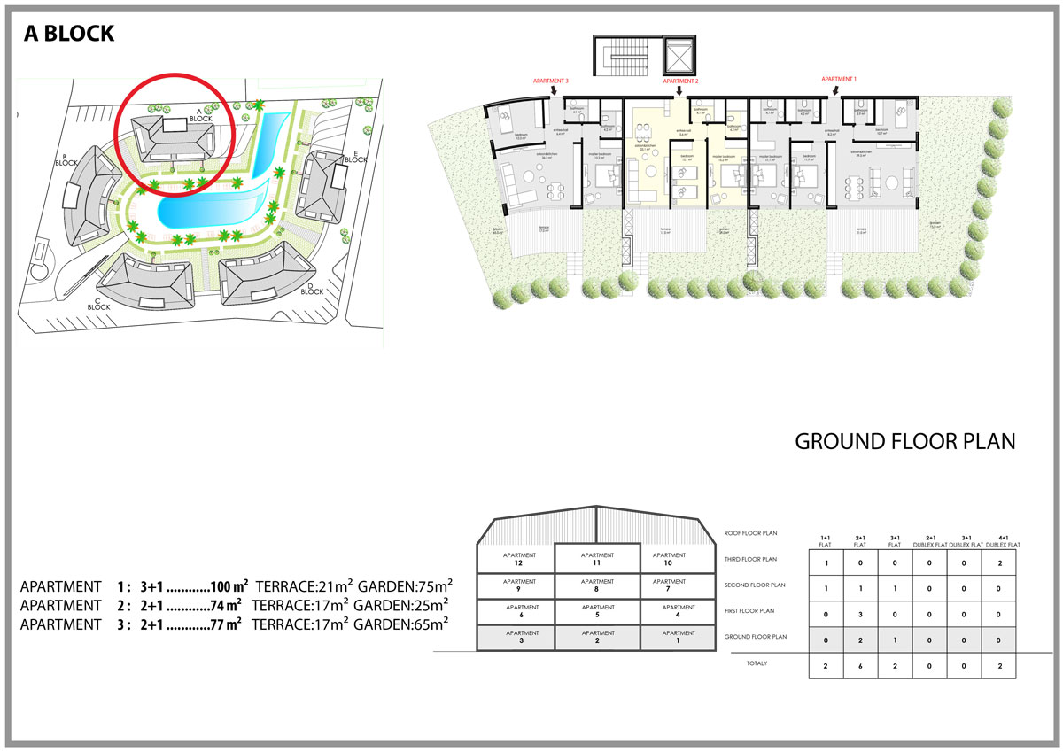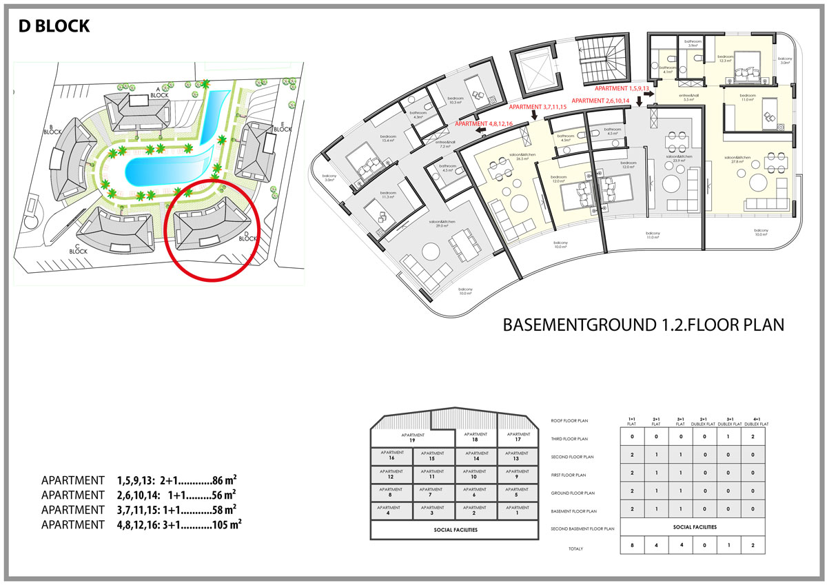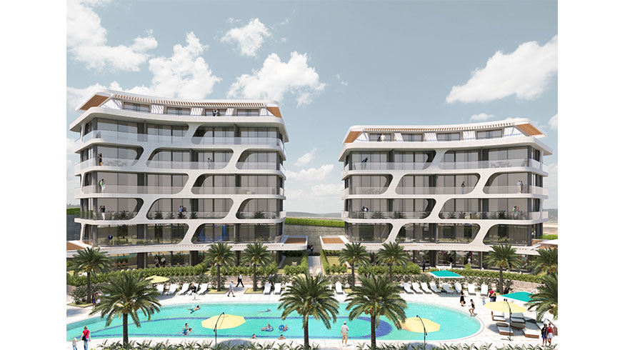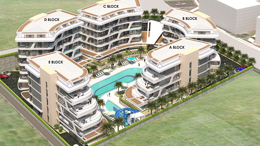 The facility will consist of 5 blocks in an oval circle with 64 apartments in different sizes, ranging from 1 + 1 to a penthouse 4 + 1, where all will have well-thought-out designs with a choice of materials for the design-conscious. Some of the apartments will have a ground terrace and all apartments will have the sun on their terraces during the day. The pool and garden area will also have sun all day as this is taken into account when placing the blocks. The apartments can otherwise be used all year round and can provide a relaxing winter holiday.