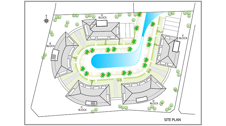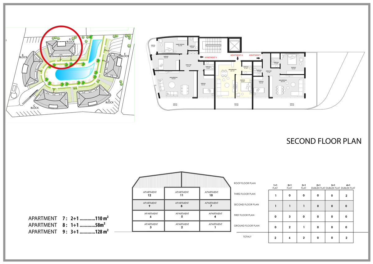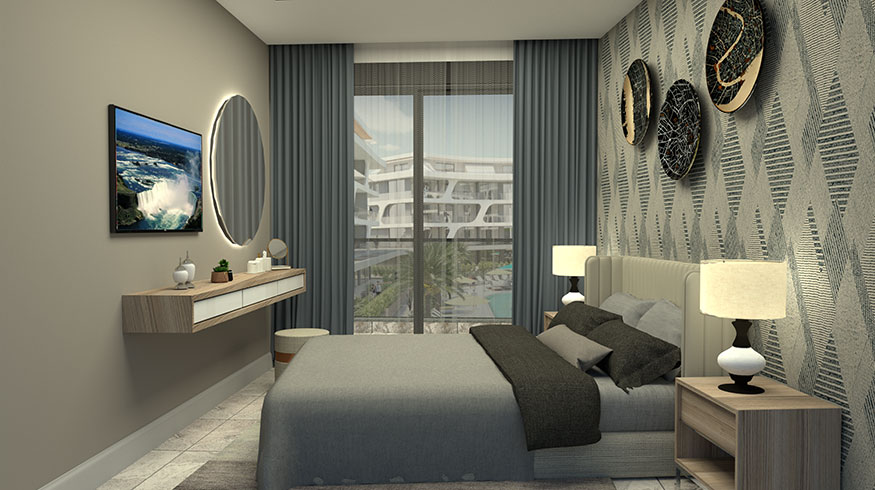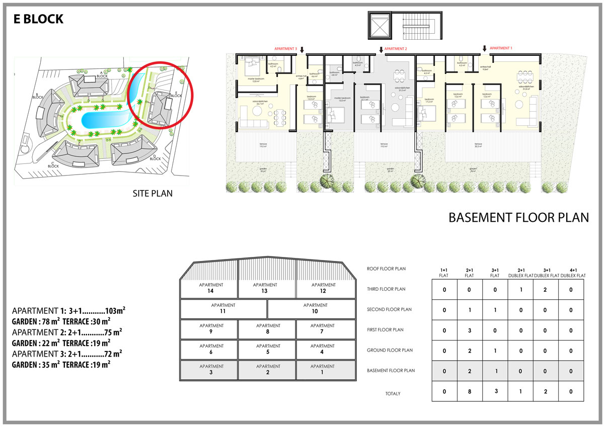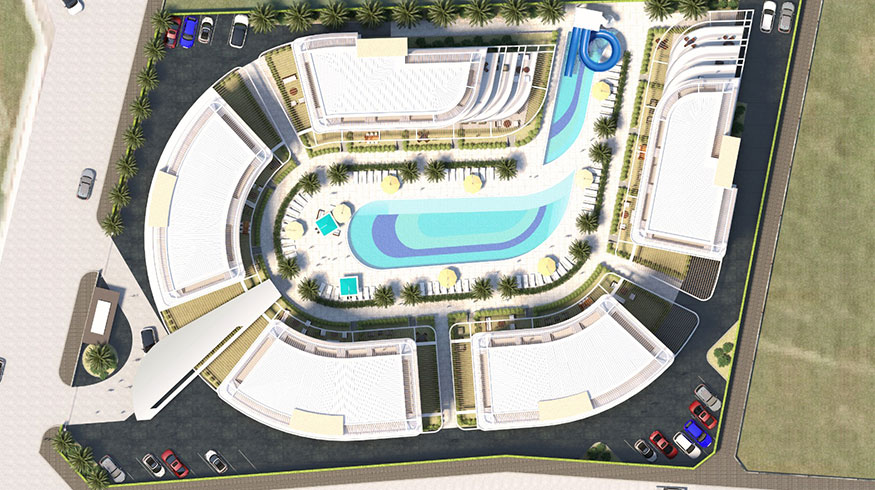 The facility will consist of 5 blocks in an oval circle with 64 apartments in different sizes, ranging from 1 + 1 to a penthouse 4 + 1, where all will have well-thought-out designs with a choice of materials for the design-conscious. Some of the apartments will have a ground terrace and all apartments will have the sun on their terraces during the day. The pool and garden area will also have sun all day as this is taken into account when placing the blocks. The apartments can otherwise be used all year round and can provide a relaxing winter holiday.