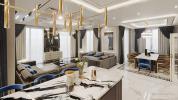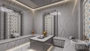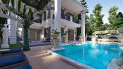 Villa Nehirsu Kargicak Alanya. Modern design is ideal for large families. You will feel the wonderful panoramic view of the Mediterranean. Its own pool, car park, garden, security system. 500m2,5 + 1,4 bathrooms, 4 wc, 2 balconies, separate kitchen. Ceramic floor, spot light, modern kitchen, solar energy, central heating system, sauna. It will be sold fully furnished and ready for the session.