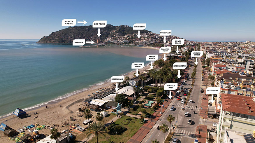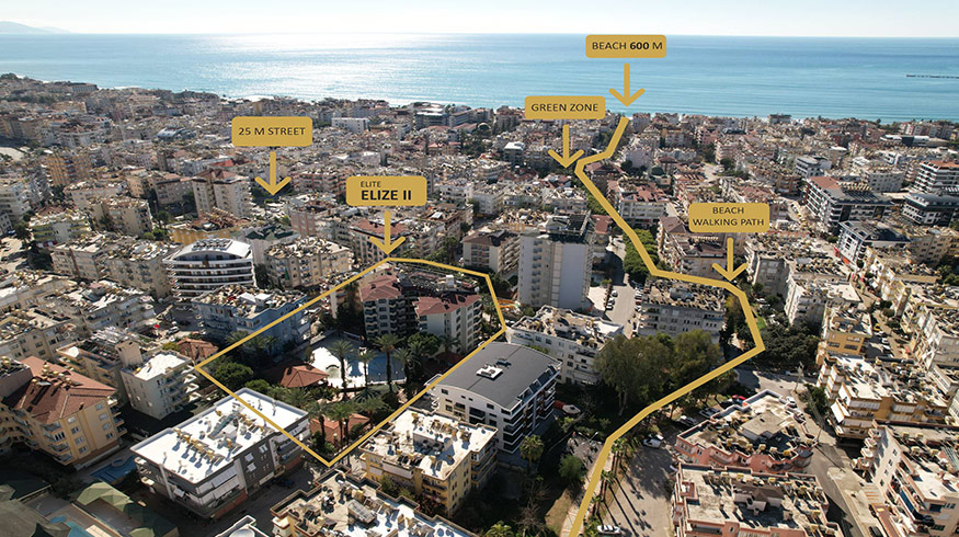 All significant tourist infrastructure of the city, including shops and supermarkets, luxurious restaurants in the marina area and the famous Cleopatra Beach, are within walking distance from the Elite Elize Residence (within a radius of 100 - 700 meters).