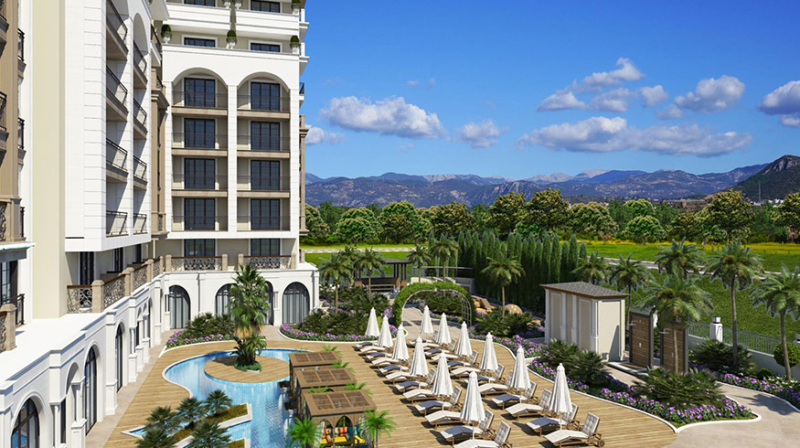 Restaurants, shops, market, bus stop - 0 m; Sports ground (tennis court) - 20 m; Banks, ATMs - 50 m; Beach - 850 m; Damlatash - 900 m; Kale - 2 km; Yacht Marina - 5 km; Dim Çay - 12 km; Dolphin show - 16 km; Belek Golf Club - 90 km; Gazipasa Airport -45 km; Antalya Airport - 125 km.