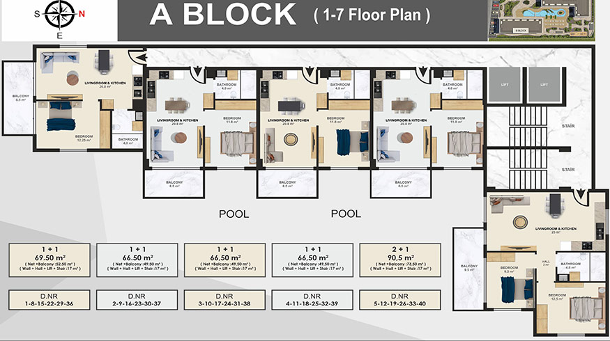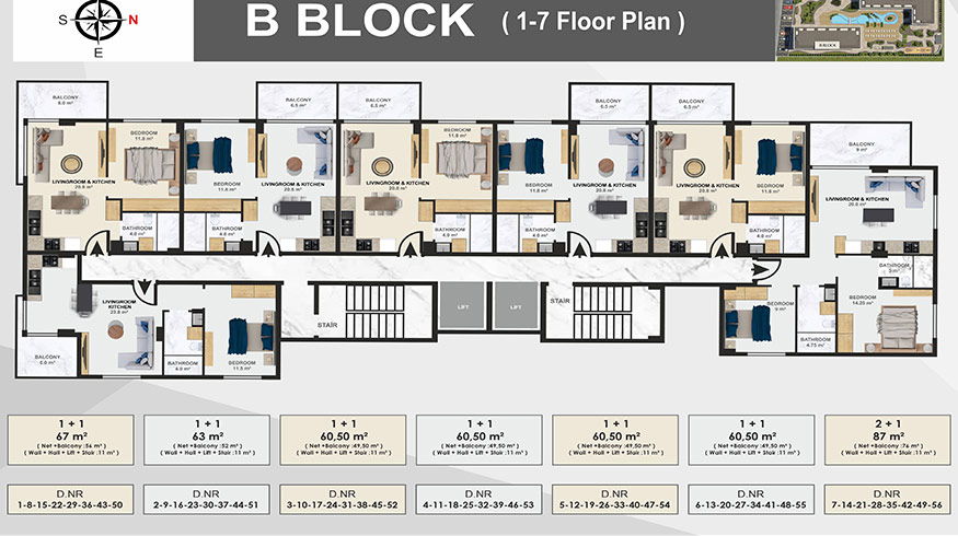 1+1 apartment, 2+1 aparment, 2+1 Duplex, 3+1 duplex