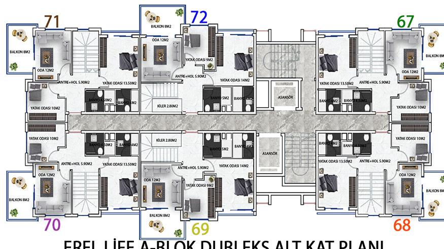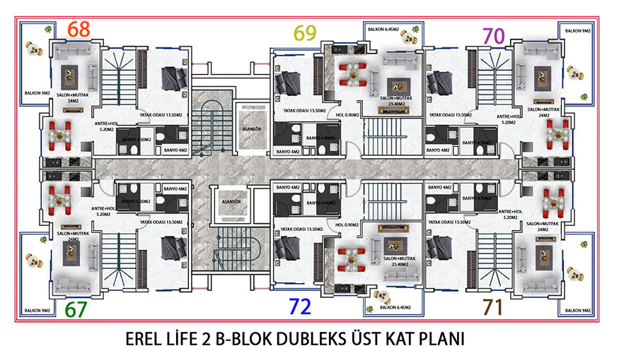 Erel Life 1 and Erel Life 2. Each housing complex will have its own social activities. Our project, will consist of 2 + 1 and 3 + 1 Dublex penthouse apartments with Sea View, Project will be with full social activity.The project starting date planned as 10.2021 and will be delivered in 18 months.