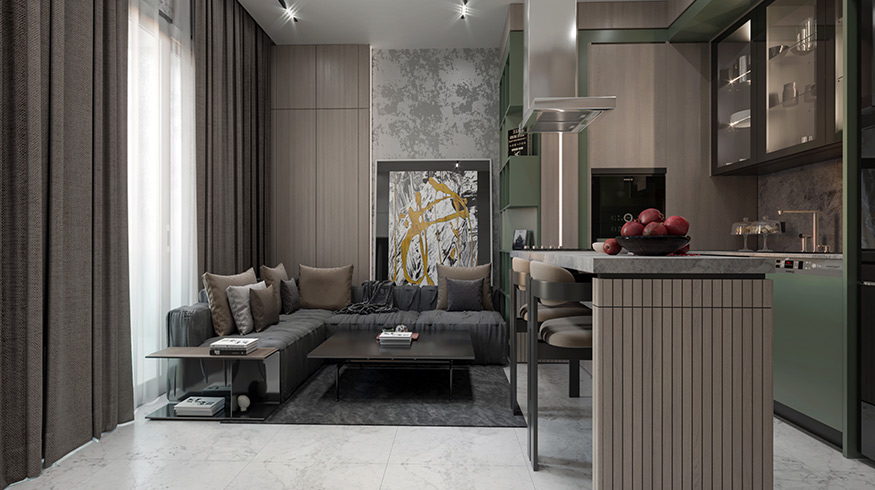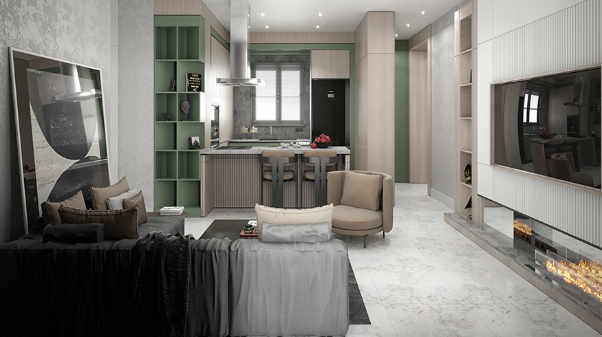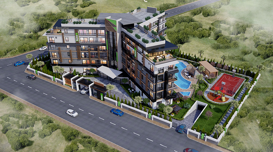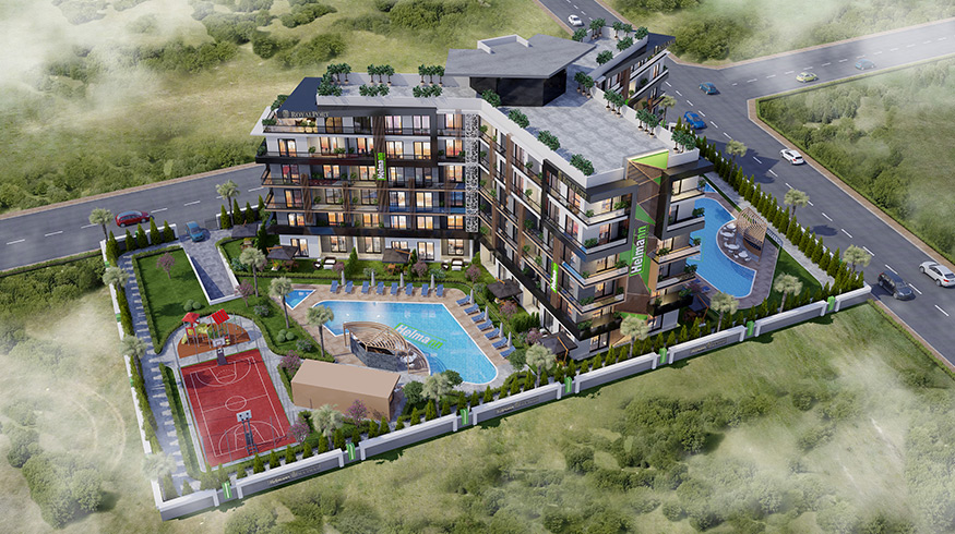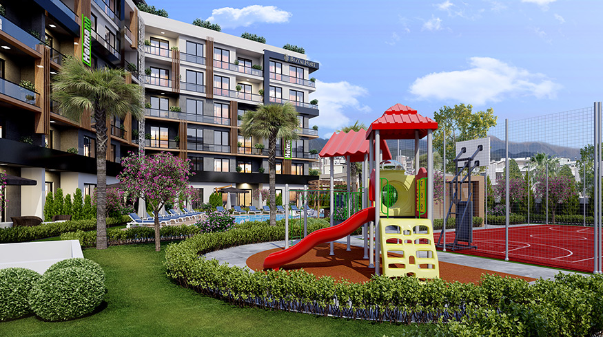 Private indoor car park, social activity area (45 m2), playground (32 m2), basketball court (136 m2), 2 swimming pools (310 m2), 2 children's pools (20 m2), ornamental pool (25 m2 ), 2 snack bars (40 m2), walking track (250 m), 2 sunbathing terraces (200 m2) and green area (1400 m2), everything that you and your loved ones need, and much more can be found at HELMANN I RoyalPort.