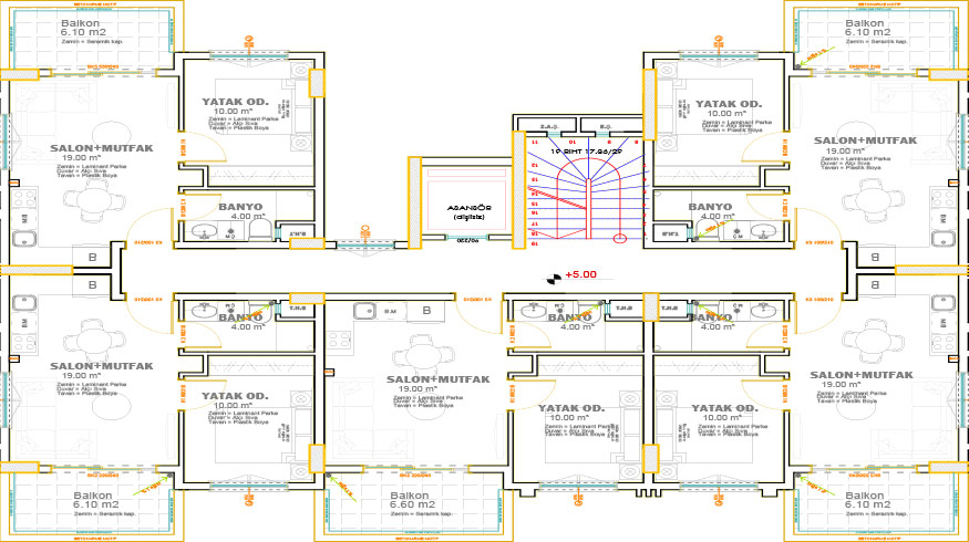 Flat Interior Walls: 13 Cm - Building Exterior Walls: 23 Cm - Concrete: C30-C25 - Roof: Heat Insulated