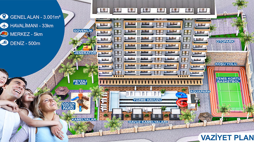 Enjoy life in Alanya, Turkey's tourism paradise. Color your life at KURT TOWER with indoor pool, steam room, sauna, Turkish bath and fitness room.