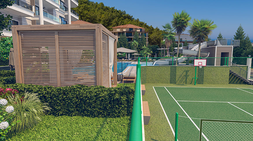 Indoor parking,Tennis court,Outdoor swimmingpool,Jacuzzi, Aqua Park,Children pool, Turkish bath (Hamam),Sauna,Massage Room,Showers,Fitness,Heated Indoor Pool,Cinema,Children's play area, BBQ and Seating Area,Ornamental Pool and Waterfall, Water tank,Central Water Treatment System and Booster, Doorkeeper apartment,Entrance with Lobby, Billiards,7/24 Security,Generator, Double Elevator, Suitable for disable people,Wi-Fi,Camera system, Sea Views,Mountain Views,Nature Views,Garden Views,Fire.