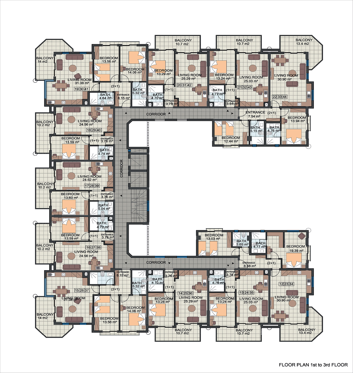 1+1 apartment, 2+1 apartments, 2+1 duplex, 3+1 duplex