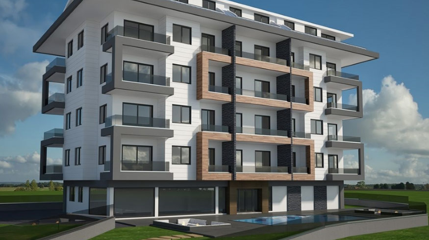 The project is one 5-storey block and includes 28 apartments. Apartment layouts from 48,90 square meters to 127,70 square meters. Apartment types 1+1, 2+1 penthouses, living rooms with American style kitchens and 1, 3 bathrooms. The apartments will be handed over with a fine finish, equipped with bathrooms, installed plumbing and built-in kitchen cabinets. On the territory there are: outdoor swimming pool, fitness, sauna, power generator, caretaker.