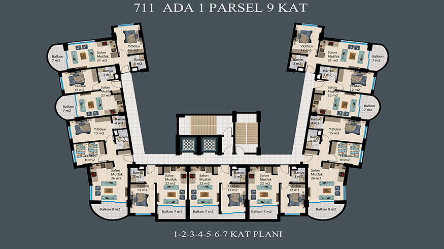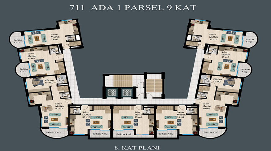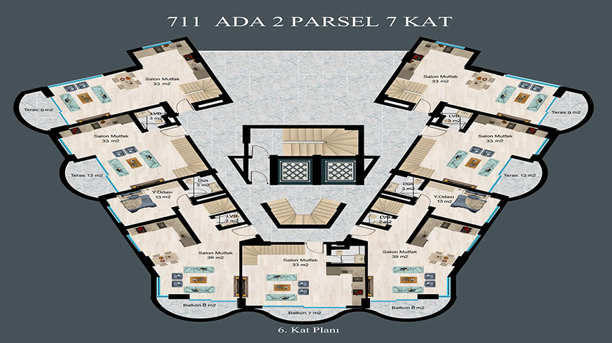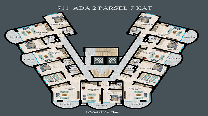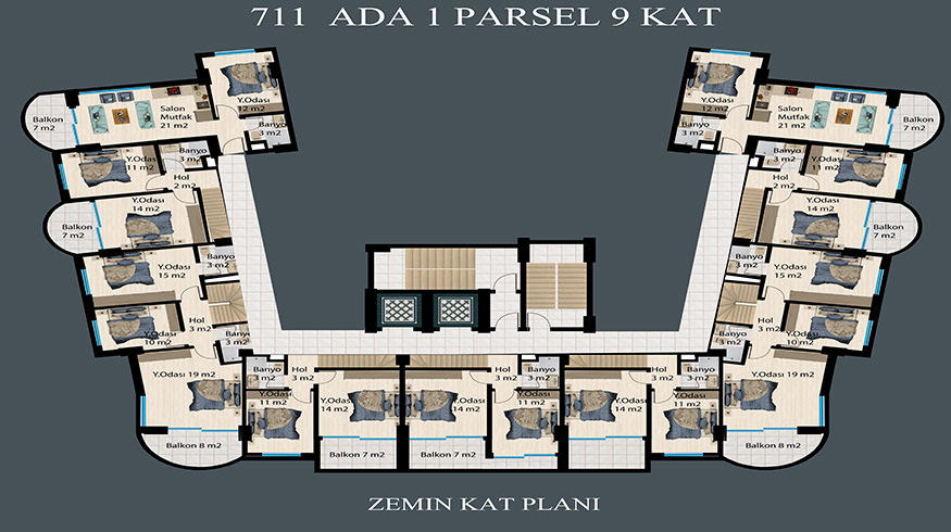 There are 2 blocks and 130 apartments in the project, which has 7.700 square meters of land. The features of the project located in DEMİRTAŞ region are briefly below. 750 meters to the sea, 6 Km to Mahmutlar center, 15 Km to Alanya center,20 Km to Gazipasa airport,
