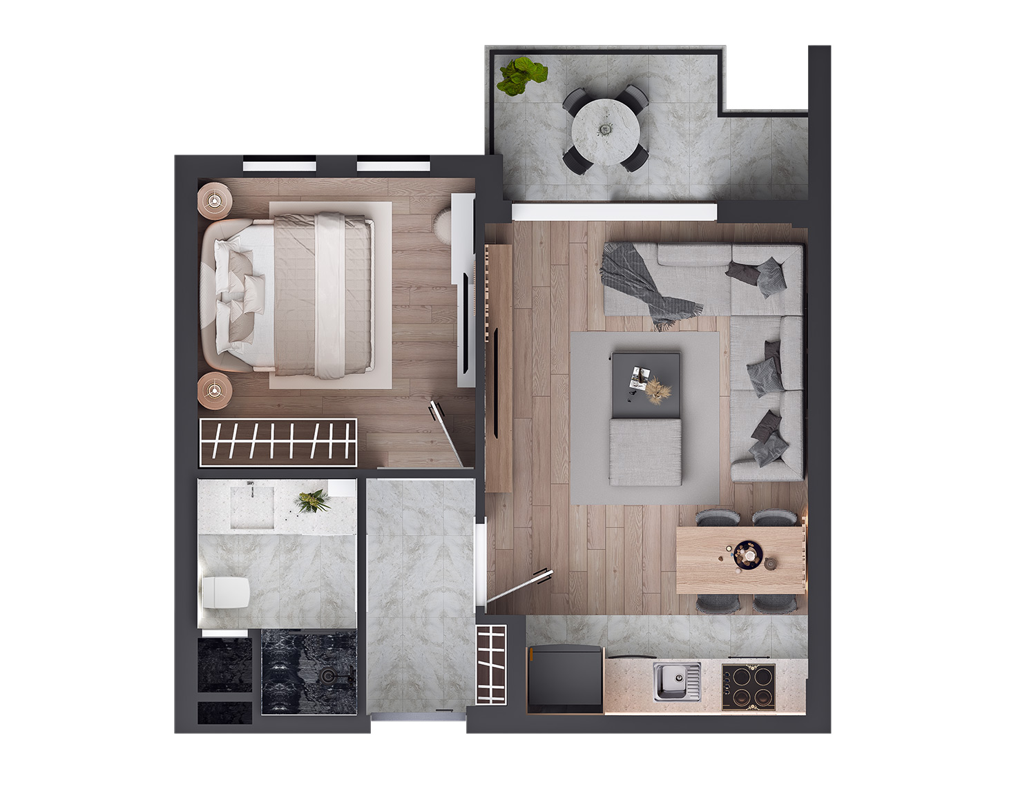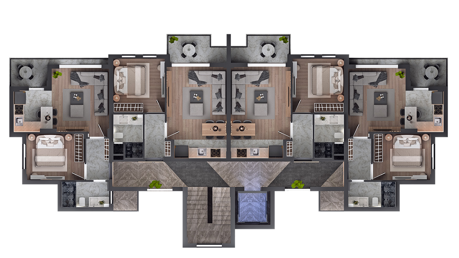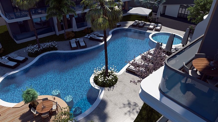 The third project of our Viamar series, Viamar Lily is built over an area of 7065 m² consisting of 3 blocks, 32 units of 1+1 and 56 units of 2+1 apartments all with pool view, and 2 commercial units. Whether you stay for a long time or rent it out after your holiday, Viamar Lily promises a safe, modern, and enjoyable living space for you and your family!