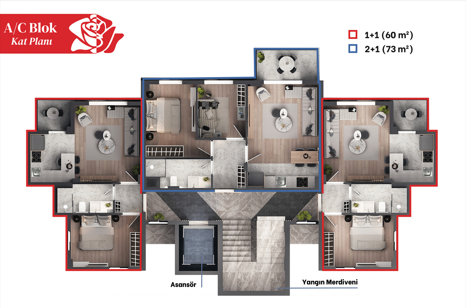 The third project of our Viamar series, Viamar Lily is built over an area of 7065 m² consisting of 3 blocks, 32 units of 1+1 and 56 units of 2+1 apartments all with pool view, and 2 commercial units. Whether you stay for a long time or rent it out after your holiday, Viamar Lily promises a safe, modern, and enjoyable living space for you and your family!